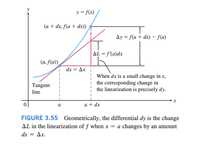- Δy is the change in the y value, dy is the change in the tangent line slope